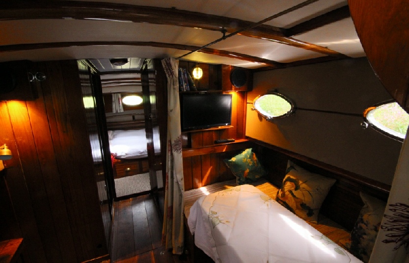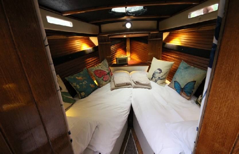 6 berth - Aft Master cabin, head and separate wet room, saloon cabin, wheelhouse, galley and forward cabin. 38ft x 9ft with 8ft 2” air draft.